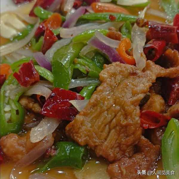 說是青椒肉片,其實還放瞭很多洋蔥,肉片都很大片,醃制入味後更細嫩爽滑瞭,吃起來入口即化,雖然是瘦肉但是一點也不柴。而且洋蔥和青椒搭配得很好,提味之餘還能解膩,幹辣椒的加持又有微微的辣更是開胃下飯瞭。