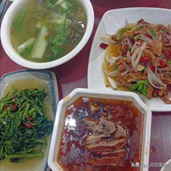 有這麼多重油重辣的菜,自然要來一個清爽的解膩刮油。小白菜是上市季的時蔬,所以又便宜又清爽,酸菜酸酸辣辣味道香能開胃,還有細膩的粉絲加持,雖然不是什麼老火靚湯,但是四川人就愛這一口,基本上湯底看不到油星,但就是爽口,吃完飯喝一碗這個湯,感覺帶走瞭所有的油膩感,讓人元氣滿滿,又能恢復體力。