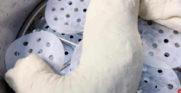 4、沿長邊卷起,放入鋪好屜佈的蒸屜上,鍋中加入足量水,放入蒸屜靜置20分鐘。