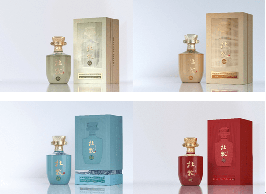 在產品包裝上,「杜牧」禮盒造型以窗格造型制造隱約感,將東方的含蓄之美展現得淋漓盡致。在產品設計創新上,「杜牧」將盛唐的元素巧妙運用其中。其瓶形,靈感來源於唐時梅瓶酒具,器形內斂文雅,是唐時文人墨客常用的酒具;其蓋形源自唐朝冠冕,顯尊貴;其紋式取自盛唐琵琶上所裝飾的寶相紋,莊嚴奢貴。