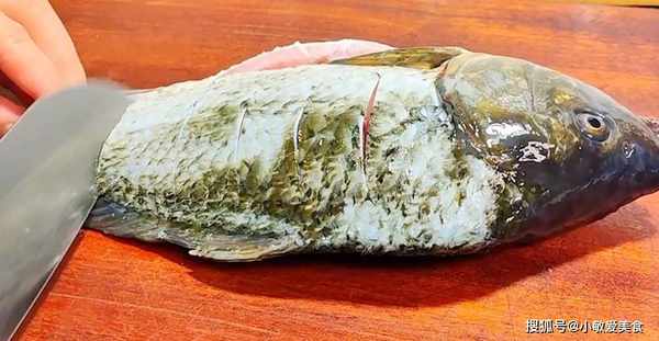 1、首先準備一條鯽魚,清洗幹凈,再肉厚的地方打上花刀,用廚房紙擦幹魚身上的水分,這樣可以防止煎的時候油崩濺的到處都是。