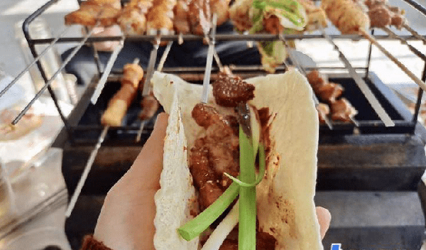 淄博燒烤可謂融合瞭山東的特有風格,卷餅、小蔥、面醬、孜然粉、然後還有胡椒味,這些一樣樣的擺在的面前,任由食客自己組合。