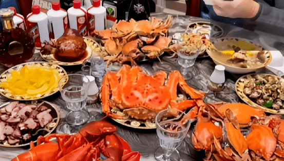 等服務員上齊後再看,桌上的人參海參龍蝦鮑魚茅臺應有盡有。就這樣,所有人幹杯後開始享受這來之不易地豪橫美食。時間過得很快,直到晚上十點,所有人終於酒足飯飽,並紛紛下樓離開。