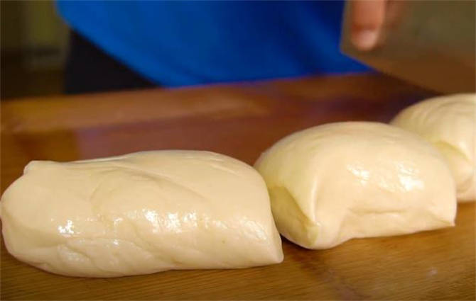 2.案板上刷點油防粘,現在咱們這個面已經餳好瞭,就不用再揉瞭,直接把它搓成長條,切成小劑子就行瞭。