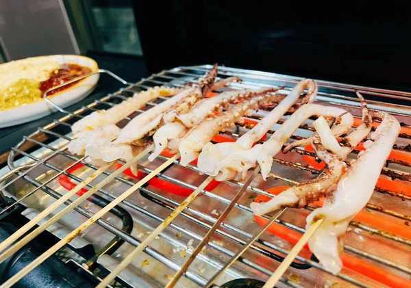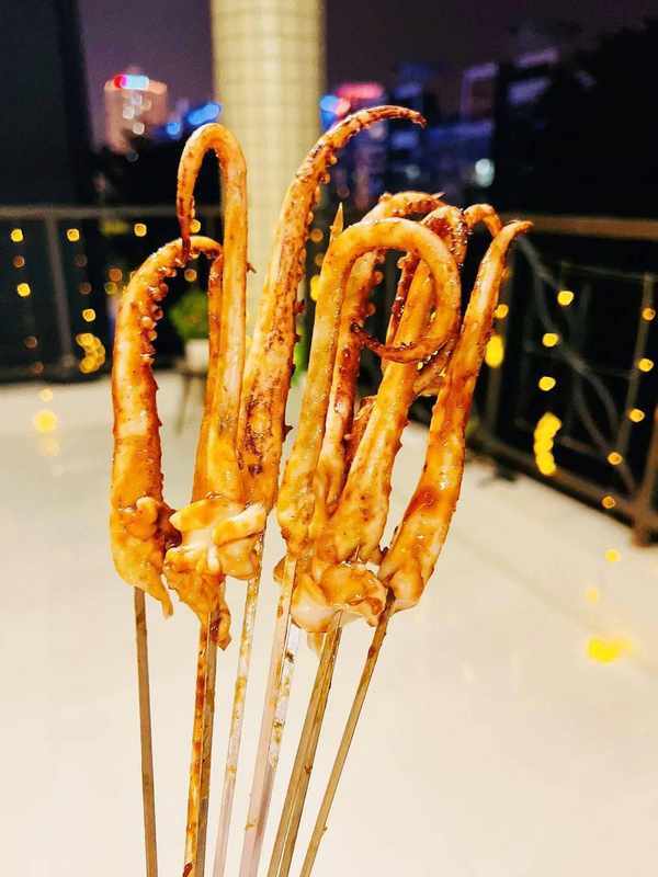 魷魚須快烤熟的時候刷瞭兩次蒜蓉辣醬,從小吃到大都是這個搭配,簡直太好吃瞭。