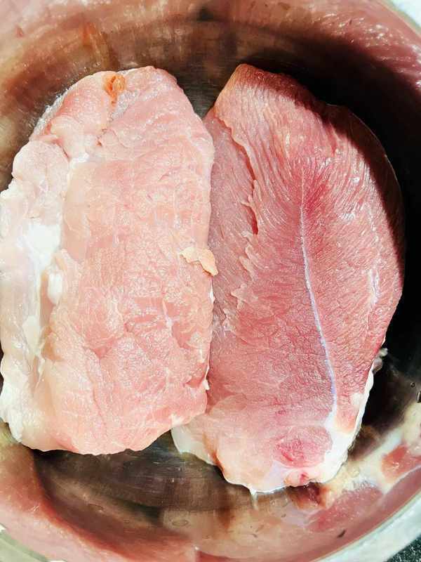 將所有醃肉配料放進盆裡,肉塊放進去,攪拌均勻醃制1小時以上。