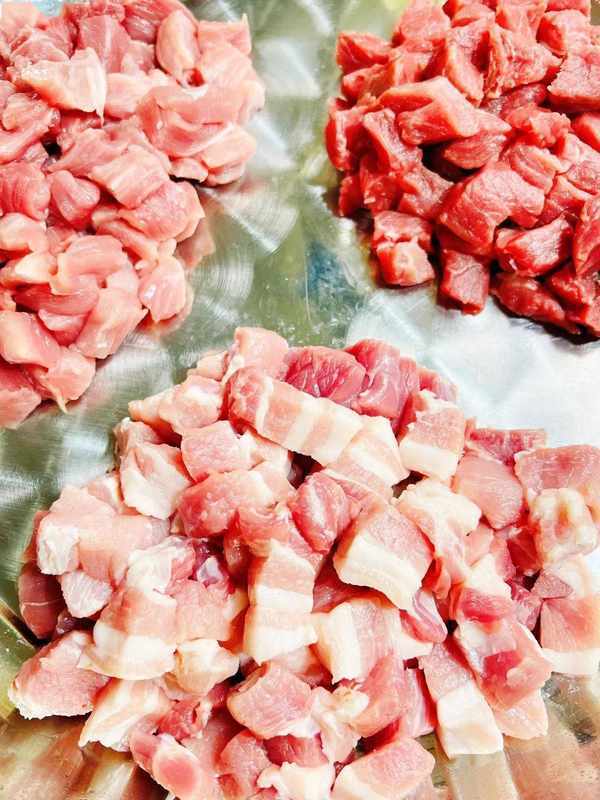 切肉條、肉塊,隨意發揮。烤免醃肉版本,所以切小塊。