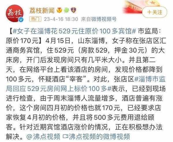 最近幾日淄博的“匯通賓館”被爆出從一百多元一晚漲價到五百多遠一晚,淄博官方的賬號評論區下充斥著討伐匯通賓館的遊客,要求官方快速整治。還有遊客爆出淄博某燒烤商傢有強制消費、菜品不新鮮等問題。