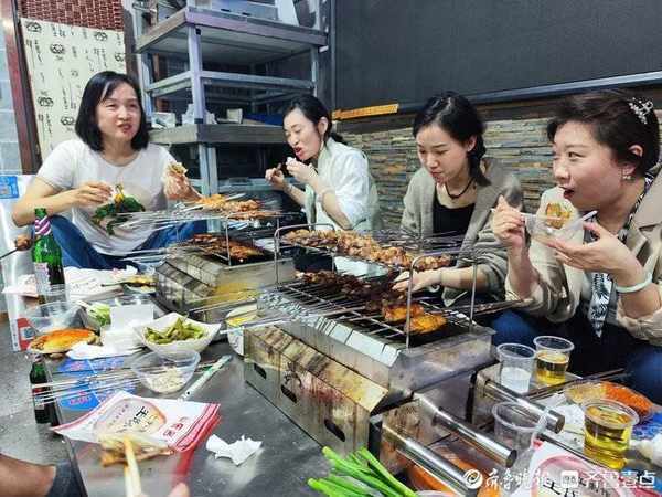在濟南,許多無法去外地吃燒烤的市民,紛紛將目光轉移到瞭濟南本地的淄博燒烤店,近一個月來,濟南的淄博燒烤店也迎來瞭客流高峰。