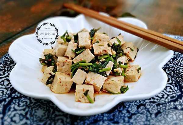 【食材】:香椿,豆腐,芝麻,生抽,辣椒油,食鹽。