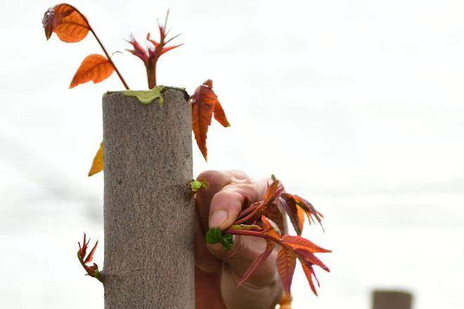 位於新陸村新建宅18號石斛園內“立體農業”種植的香椿“冒出瞭頭”,可以采摘“嘗鮮”啦!