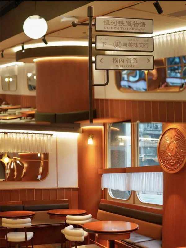 連餐廳門頭也設計成瞭列車車頭的樣子,