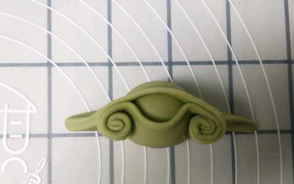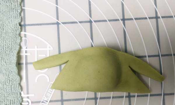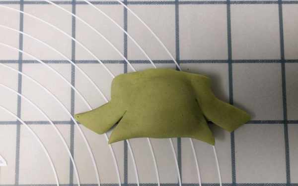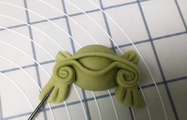 16、用裱花針按壓青蛙的前後兩隻腳,按壓出腳掌紋。