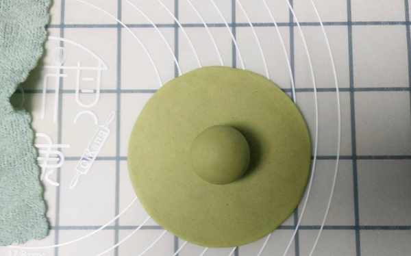9、把剛剛整理好的小面劑子放到面皮中間。