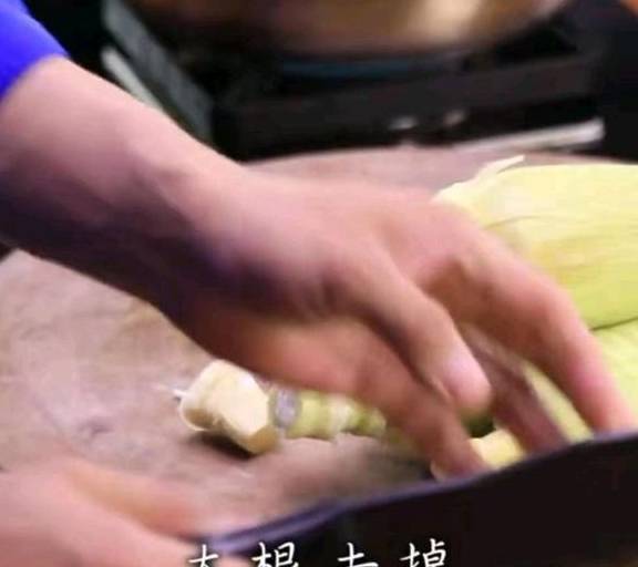 2、自己處理的時候,隻要把玉米皮剩下薄薄的一層,能夠完整地覆蓋玉米即可。然後把玉米地把子切去即可。
