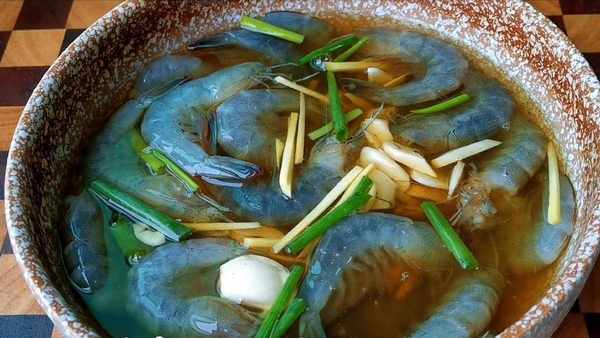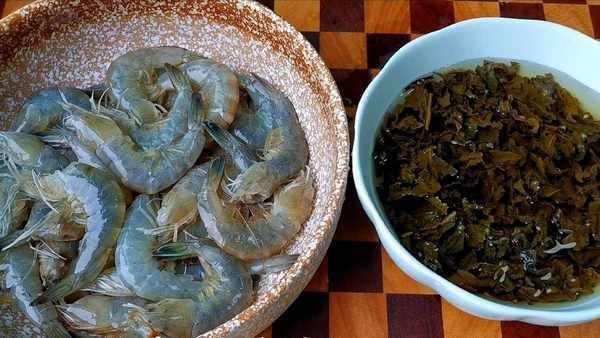 準備食材:茶葉、大蝦、蔥薑蒜、黃酒