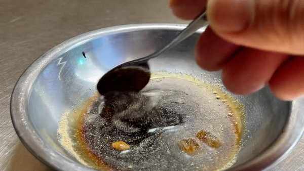 6.小盆放入三粒的冰糖,四勺的生抽醬油,一勺老抽上色,再放入料酒,半勺胡椒粉,一勺食鹽。