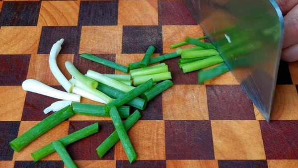 3.大蒜切成薄片,薑切成薑絲,再切一些蔥段,切好放盤子裡。