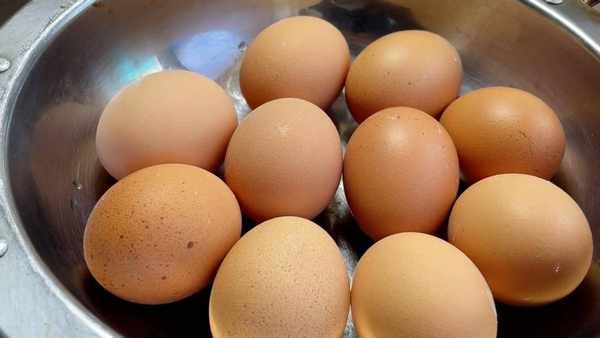 4.雞蛋通過五分鐘的浸泡,清洗幹凈撈出控幹水分,生薑切成薑片,切好裝入盆中。