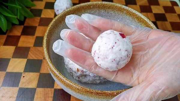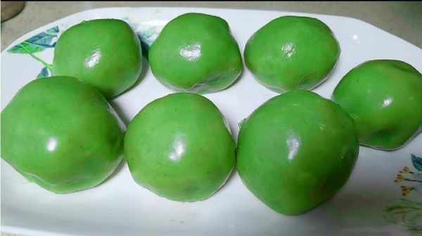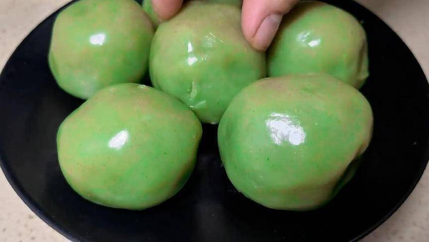 4.取出一小團用手把它搓成光滑的球形。