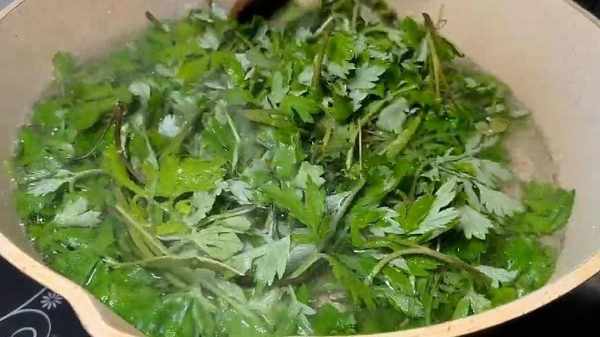 2.鍋中燒水加入一勺鹽,一勺小蘇打,下入艾草葉焯燙一下,水開後煮兩分鐘,關火控水撈出放入涼水盆中快速過涼,擠出水分。