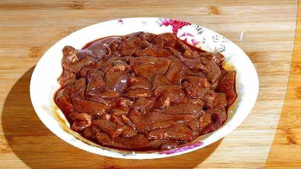 1.兩塊豬肝洗凈,切成長條,切成薄片,不要切的太厚,把切好豬肝放進大盆裡面,加入清水,把豬肝抓洗一下,多清洗幾遍,放在菜籃子,反復的擠壓,把豬肝裡面的血水擠壓出來。