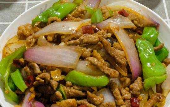 鍋中放油,將醃好的裡脊肉放入鍋中煸炒,裡脊肉變白之後再將洋蔥倒進鍋中開始翻炒,翻炒片刻之後把小米椒和生抽倒進去炒勻。最後加入適量的鹽調味,再翻炒幾下就能出鍋。