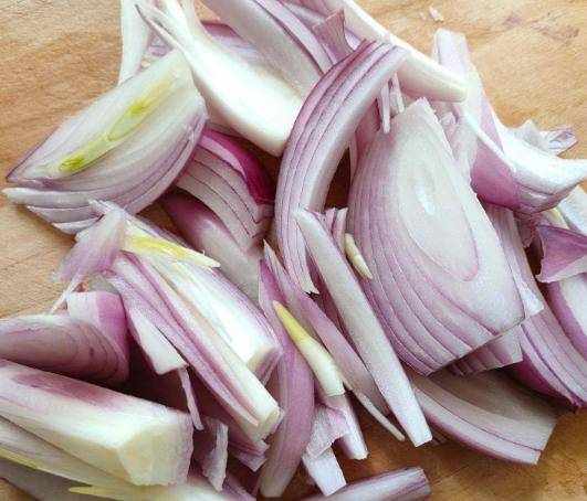洋蔥中含有大蒜素,香氣濃鬱,加工時常因刺鼻的氣味讓人哭泣。正是這種特殊的氣味刺激胃酸分泌,增加食欲。動物實驗也證明,洋蔥可以增加胃腸道的張力,促進腸胃蠕動,從而起到開胃的作用。