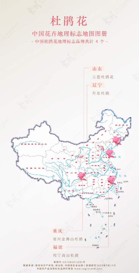 今日分享中國杜鵑花地理標志地圖,共計4個地標產品。