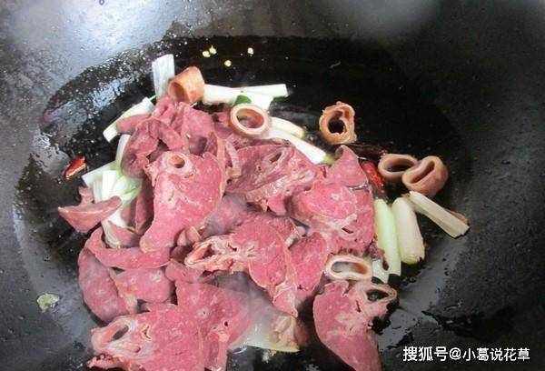 4.炒出香味後,倒入豬肺,邊攪拌邊用大火煮一勺生抽,蓋上少許水。