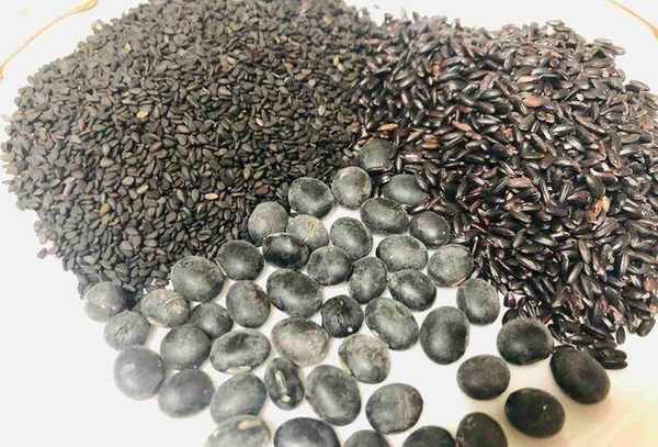 黑米40克,黑豆20克,芝麻40克,水800毫升準備步驟: