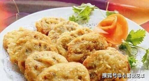 14、鍋中倒入適量的油,加熱至70%熱。加入馬鈴薯和藕餅,用小火煎至金黃色。