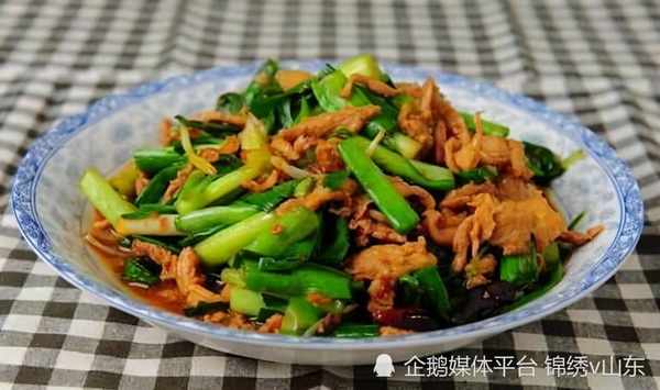 材料:豬肉或雞肉 150 克;蒜苗 200 克;薑 適量;蒜 適量;生抽 適量;料酒 適量;鹽 適量;胡椒粉 適量;雞精 適量;油 適量