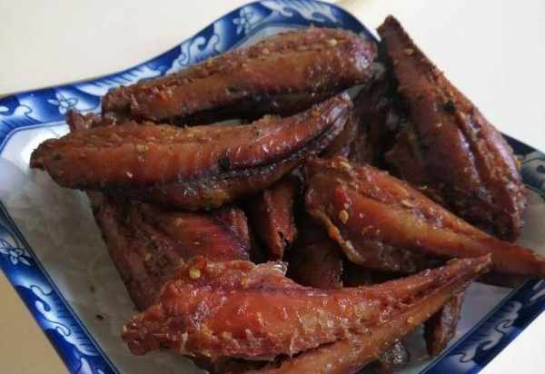 第三步:醃制前,我們還可以用清水沖洗幾遍,洗掉裡面的污垢和血水。然後瀝幹水分,加入少許料酒和蔥薑水去腥。然後加入少許鹽調味醃制,適量辣椒或花椒粉醃制。不喜歡吃辣的朋友可以隻用鹽醃。裡面不需要其他的調料,頂多用點生抽或者老抽上色和醃制。醃好後,將魚放在太陽下曬幹,調味。