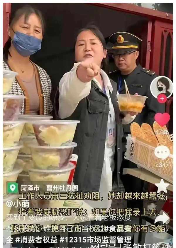 3、執法人員成瞭視頻的背景,夠諷刺。希望菏澤學習一下福建某農貿市場的管理,流動評價定期淘汰,莫讓一顆老鼠屎壞瞭滿鍋湯。