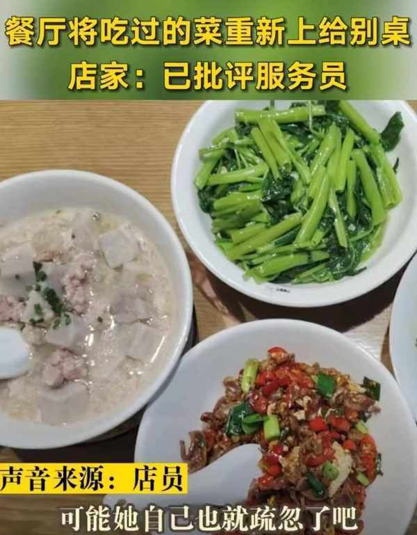 但是,食品安全不容小覷,必須要引起重視,店內每天迎來送往那麼多客人,也不排除客人有某方面的問題,被吃過的菜絕對不能端給另外的客人吃,這屬於不可回收食品,應該被稱之為廚餘垃圾,是要被處理掉的。