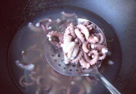 烹飪技巧:1、章魚焯水的時候,鍋裡的水燒開即可,註意時間不要太長,2分鐘左右即可。如果對海鮮的味道特別敏感,焯水的時候可以加一點料酒。去除某些氣味;