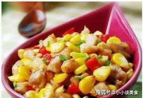 5、鍋內留底油,下薑末、蔥花炒香,加入玉米炒至變色。