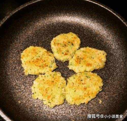 然後我們另取一個碗,將西蘭花、胡蘿卜條、土豆片等混合均勻。攪拌後,可以分成小團,然後壓成小餅。這個時候我們可以在烤盤上刷一些橄欖油,然後把小蛋糕放在烤盤上,烤10分鐘左右,翻面再烤5分鐘左右,直到表面呈現出深淺即可金黃色。