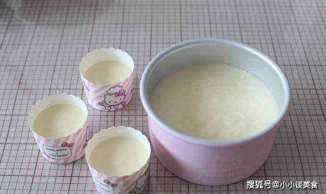 9、將混合好的面糊倒入離模約20公分處,倒入模中至滿約7分鐘。如果還有剩餘的面團,可以將其放入紙杯中;