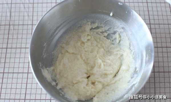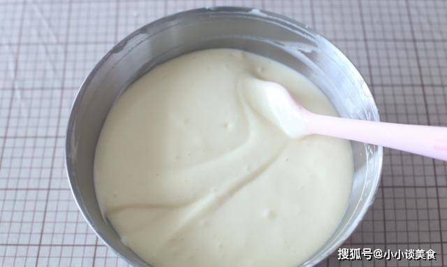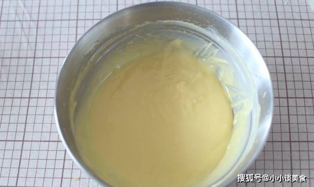 4、加入蛋黃,按照上一步的方法攪拌均勻。混合狀態柔軟順滑保存備用!