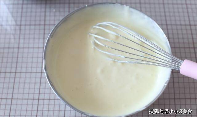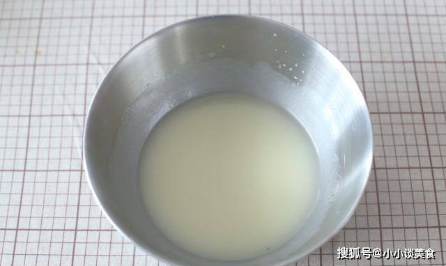 1.把玉米油和牛奶放在一個碗裡,用打蛋器打至順滑,和蛋奶油盡可能均勻,看起來兩者混合在一起變稠瞭