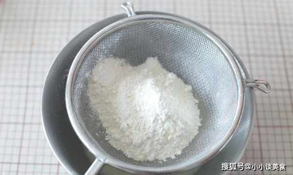 2.用篩子將面粉過篩,使面粉中的小塊散開。以後會更容易控制,蛋糕的質地也會更細膩!