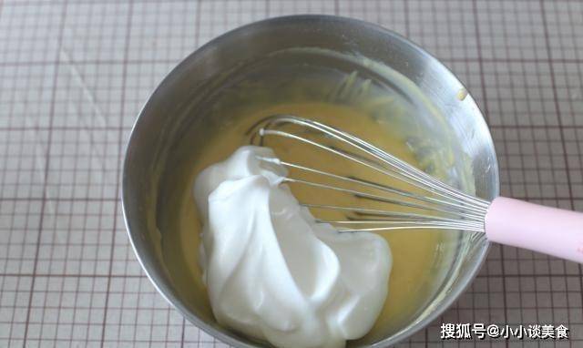 6.將1/3的蛋白霜放入蛋黃糊中,拌勻