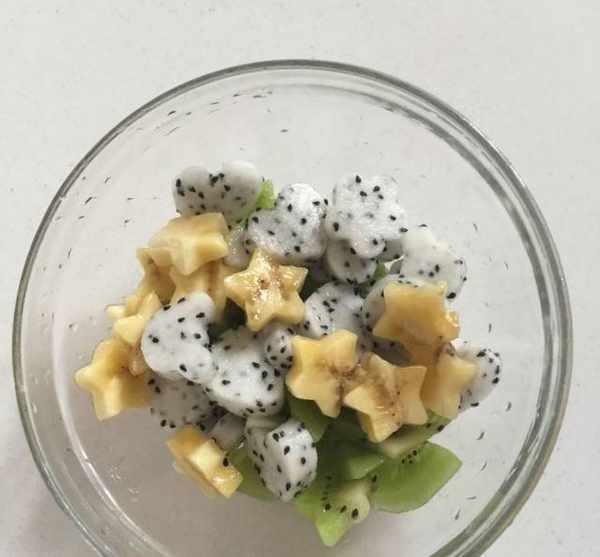 Step1.準備必要的水果:香蕉去皮,奇異果去皮,火龍果切片待用!(也可以根據自己的喜好混搭水果)