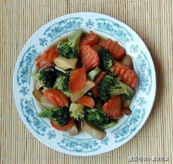 做法:胡蘿卜去皮,杏鮑菇、胡蘿卜切塊入鐵鍋,西蘭花分成小朵,洗凈焯水,沖涼。大蒜切片,洋蔥切碎,薑切末。起鍋,加入油和八角,用小火炒香。加入胡蘿卜,炒2分鐘。加入杏鮑菇和生薑,攪拌至杏鮑菇熟透。加入紅蔥頭、大蒜和蠔油,炒香。加入西蘭花,加入胡椒粉和鹽攪拌均勻,然後加入一湯匙開水和雞粉攪拌均勻。