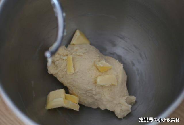 1.將所有面團材料放入料理機的和面桶中,揉成球狀微筋,加入軟黃油。