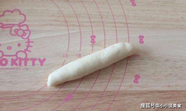 6、從上向下搟好後,閉上嘴依次做其他的小面團,然後從第一個搟好的面團開始揉成中間厚兩頭薄的長條。