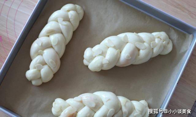 10.將包好的辮子肉松放在烤盤上,室溫發酵最後一次至兩倍大。