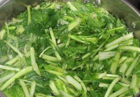第三步,準備適量的青苔。清洗幹凈後,放入加瞭鹽和少許食用油的沸水中燙一下。生切後,理水備用。另取一鍋,加入清水,放入蔥薑片,煮至鍋底微微冒泡;